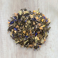 Verveine*, fleur d'oranger*, camomille*, tilleul*, bleuets*, arômes naturels (agrumes) Verbena*, orange blossom*, chamomile*, linden*, cornflower*, natural flavors (citrus)