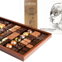 La Collection de Karen Chocolat est un coffret de 56 bonbons de chocolat (ganaches, pralinés, caramels, pâtes d'amande).